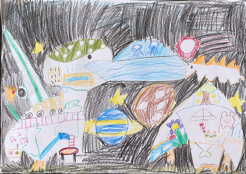 大好きを詰め込んだような夢のある未来のおうちを考えてくれました。6才が描いたとは思えない発想力と、たくさんの色を使って丁寧に仕上げてくれた画力にも驚かされました。